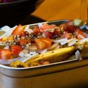 Item Description: Indian spiced seasoning salted fries with a healthy serving of Indian mint and coriander green chutney mayo on.