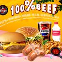 100% Prime Beef Cheese Burger+ Spicy Chicken Burger+ Grilled Meat Sausage 2Pcs+ Fried Wonton 4 Pcs+ Pepsi+ Mineral Water (N10)+(N1)+(P19x2)+(N9X4)+(03)+(01)
