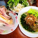 For ref only: A flavorful soup served with rice stick noodles and meat garnished with herbs which are so inviting