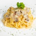 Homemade pasta, onion, smoked ham, parmesan cheese, egg yolk, cream sauce