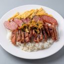 Steamed rice with fried pork and sausage