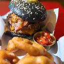 Slider activated charcoal bun topped with Lettuce, Garlic Aioli, Australian Beef Patty (60gr), Blue Cheese, Homemade BBQ sauce, Crispy Shallots, And White Truffle Oil.