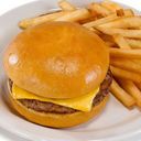 Juicy beef patty in a soft bun, served with crispy golden fries. (For ref only)
