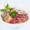 Is a Vietnamese dish of thin rice noodles topped with grilled beef, served with fresh herbs and dipping sauce (For ref only)
