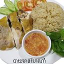 This popular dish comprises slices of poached chicken, aromatic rice cooked with chicken stock
