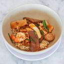 បាយឆាដោយប្រើកម្ដៅខ្លាំងជាមួយនឹងបន្លែឈ្ងុយឆ្ងាញ់ ព្រមទាំងមានស៊ុត ជាមួយគ្រឿងសមុទ្រ