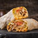 សាច់គោអាំងជាបន្ទះៗទន់ៗរុំក្នុងនំប៉័ងភីតា ជាមួយគ្រឿងផ្សំ និងទឹកជ្រលក់