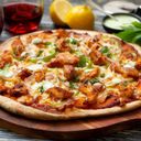 ភីហ្សាដែលមានសាច់មាន់ទីកាប្រឡាក់គ្រឿងហឹរ ខ្ទឹមបារាំង និងឈីស