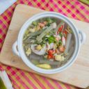 A comforting sour soup with tender chicken simmered in creamy coconut milk, balanced with a gentle tang and fragrant herbs.