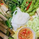 Grilled nem with khmer noodle fresh vegetables and sweet fish sauce