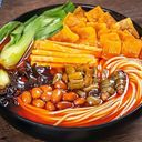 Spicy rice noodles with snails, bamboo shoots, peanuts, sour long bean, black fungus, and radish (For ref only)