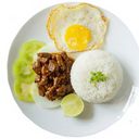 Spicy fried rice richly flavoured with garlic, chilli and lots of holy basil