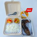Steamed new rice, pork belly, braised duck egg, pickled vegetables, chili fish sauce, free iced tea