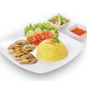 Marinated chicken drumstick fried until golden brown and coms with hot steamy rice