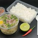 0ស្ងោរស្ពៃក្រញ៉ាញ់សាច់មាន់+ បាយស