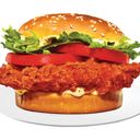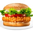 This meal features a classic chicken burger with a crispy breaded chicken patty and lettuce.