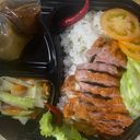 Tender, caramelized meat with a sweet, savory glaze, served with fragrant rice and vegetables. (For ref only)