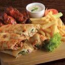 A hearty combo of grilled meats, fries, naan and sauces, perfect for big appetites