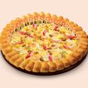 A simple pleasure in every bite with ham & prawn on top of extra cheesy sausage crust pizza (For ref only)