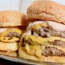 Homemade double cheeseburger on a plate 200g beef with fries (For ref only)