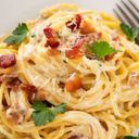 spaghetti was a little al dente for me, but the flavor was very good.liked the egg yolk on top when arrived I can mix myself. a little more parmesan maybe. bacon was good quality and tasted great.