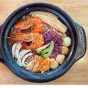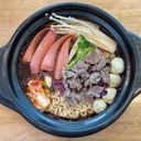 Chewy, savory, sweet, and spicy Korean noodle soup comes along with seafood, vegetable, and meatball (For ref only)