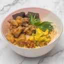 A flavorful noodle dish served in aromatic fingerroot-infused broth, garnished with fresh herbs. (For ref only)