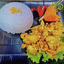 Chicken with Khmer paste, coconut milk, onion, mushroom and rice