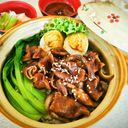 The heavenly braised beef rice noodle soup is flavored with warm spices, and sugar. Made with gelatinous beef shins and tendons, giving the broth a sticky richness