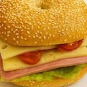 Emmental Swiss Cheese and Sandwich Ham, Lettuce and roasted cherry tomato, mustard butter.