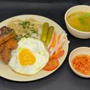 បាយប៊ីឆ្អឹងជំនីជ្រូកអាំងពងមាន់ចៀន