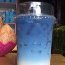 This drink features the vibrant, all-natural blue of butterfly pea flower tea beautifully layered over rich, creamy coconut milk.