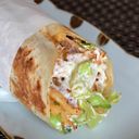 Chicken, fries, garlic, sesame sauce, onion, tomato, mozzarella between two tasted lavash breads and a side of tzatziki sauce