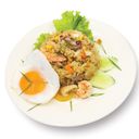 បាយឆាត្រីងៀត ដែលមានបន្ថែមពងទាចៀន ឬពងទាប្រៃចៀនបញ្ចូលគ្នា រសជាតិប្រៃល្មម គួរអោយចង់ញ៉ាំ