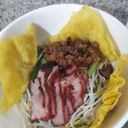 Soup noodle with roast duck, mince, soup wonton & veggies