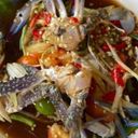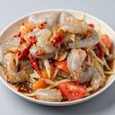 A zesty salad with tender squid and blue crab, tossed in a spicy dressing (For ref only)
