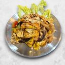 ល្ហុង និងបន្លែលាយជាមួយគ្រឿងផ្សំពិសេសដែលមានរសជាតិប្រៃ ផ្អែម