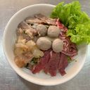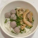 Rice stick noodles served with flavorful meatballs and aromatic herbs in a savory broth. (For ref only)