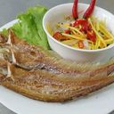ត្រីចៀនស្រួយបម្រើជាមួយទឹកជ្រលក់ស្រស់
