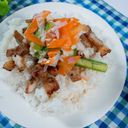 បាយសត្រូវបានយកមកឆាជាមួយស៊ុត បន្លែ និងសាច់ ហើយមកជាមួយសាច់ចៀនដែលមានរសជាតិឈ្ងុយឆ្ងាញ់។