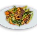 មីដុំឆាជាមួយសាច់គោ និងបន្លែ