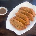 នំបុ័ងមានបញ្ចូលជាមួយសាច់ជ្រូកប្រឡាក់គ ្រឿងចៀនមានរសជាតិឈ្ងុយ