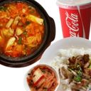 បាយសាច់ជ្រូក+ស៊ុបគីមឈីសាច់មាន់+coka