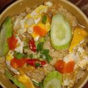 បាយសញុំាជាមួយសាច់មាន់ចិញ្ច្រាំបំពងលាយជាមួយគ្រឿងទេសផ្សេងៗ