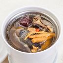 A wholesome and nourishing dish showcasing tender black chicken simmered in a revitalizing tonic soup, brimming with rich flavors and health benefits (For ref only)
