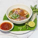 ទឹកស៊ុបមានរសជាតិឆ្ងាញ់ចាក់លើបន្លែ និងប្រហិតសាច់គោ