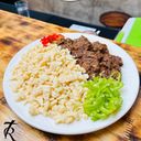 ប្រហិតសាច់ជ្រូក ៧៥% សាច់គោ ២៥% ៨ដុំ បម្រើជាមួយដំឡូងបារាំងកិន និងជ្រក់