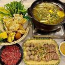 A savory dish featuring duck blood, tripe, and banana, offering unique flavors and textures. (For ref only)