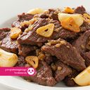 សាច់គោទាញសណ្តែកខ្មៅទឹកជ្រលក់ប៊ីប៊ីឃ្យូឆេដាឈីសបែលនិងបាយ