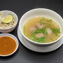 For ref only: Long hours cooked broth comes with vegetable, and rice stick noodle